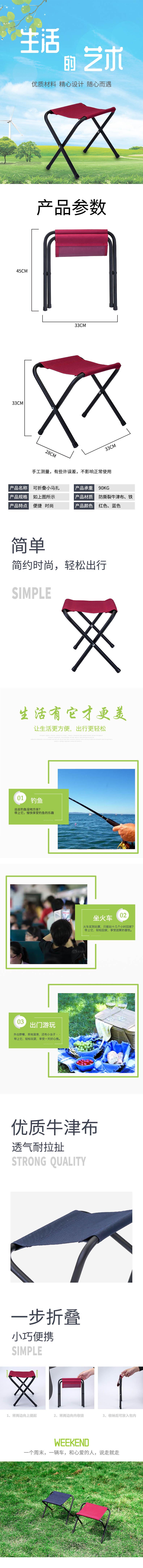 產(chǎn)品名稱:休閑折疊凳 產(chǎn)品規(guī)格:33*28*45cm 產(chǎn)品材質:牛津布+鐵管 產(chǎn)品顏色:凳面顏色可定制