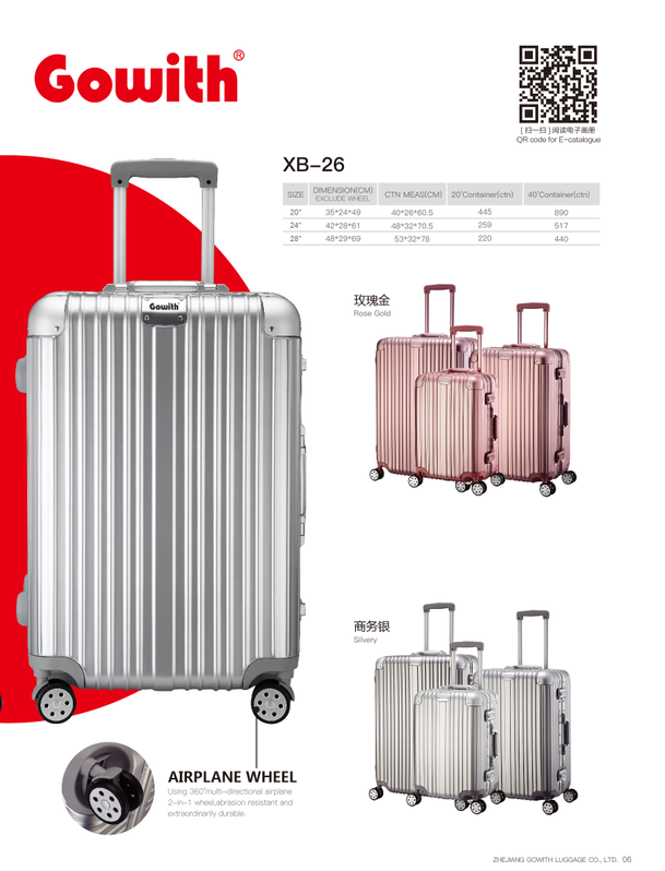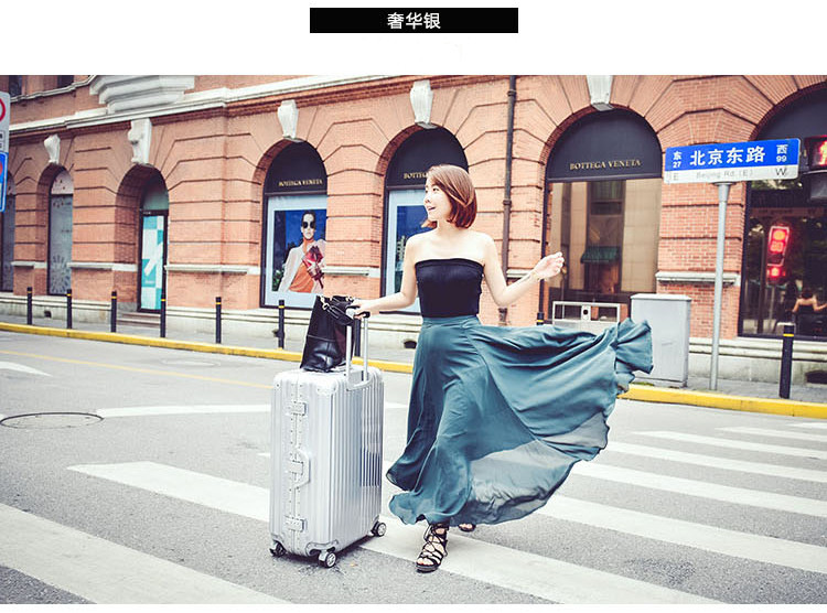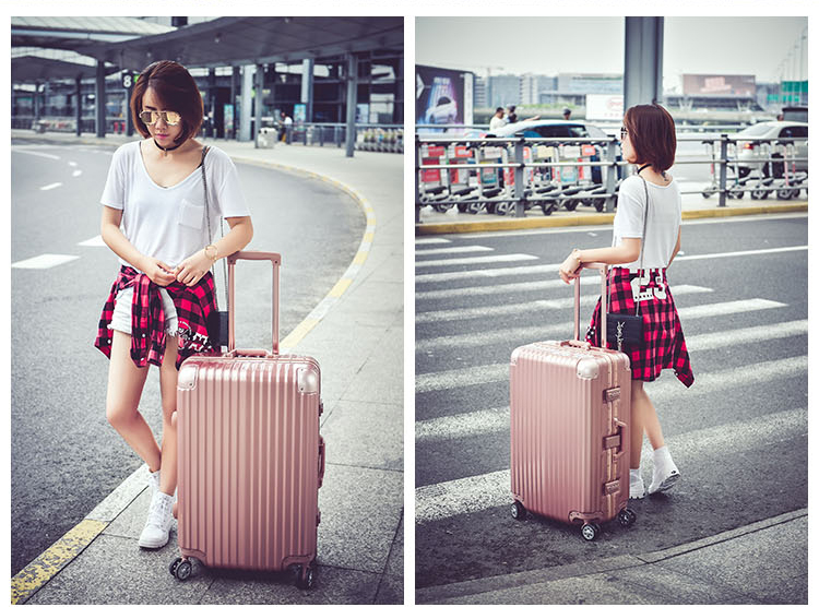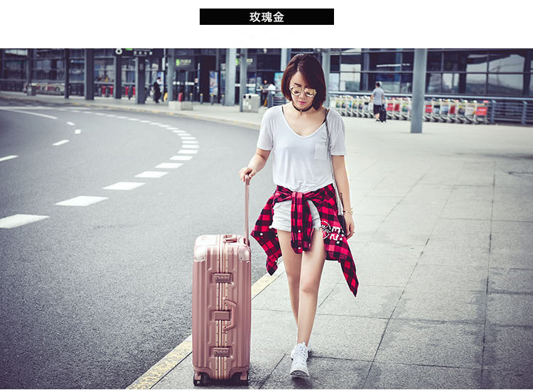 名稱:鋁框箱 型號:XB-26 尺寸:20英寸 35*24*49cm 24英寸 42*28*61cm 28英寸 48*29*69cm 材質:PC+ABS 鋁合金 顏色:商務銀 /玫瑰金